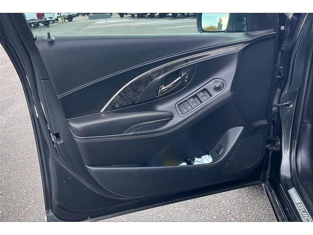 The Buick LaCrosse offers Automatic Climate Control for personalized comfort. This unit features a hands-free Bluetooth® phone system. The Buick LaCrosse has a clean CARFAX vehicle history report. The state of the art park assist system will guide you easily into any spot. The leather seats in this 2015 Buick LaCrosse are a must for buyers looking for comfort, durability, and style. Start this unit from inside with remote start. See what's behind you with the back up camera on this unit. Keep safely connected while in the vehicle with OnStar. You may enjoy services like Automatic Crash Response, Navigation, Roadside Assistance and Hands-Free Calling. This Buick LaCrosse projects refinement with a racy metallic gray exterior. Maintaining a stable interior temperature in this 2015 Buick LaCrosse is easy with the climate control system. This vehicle has a V6, 3.6L high output engine. This unit is front wheel drive. The FlexFuel capability of this model allows you to select fuel depending on the price of E85 versus gasoline.