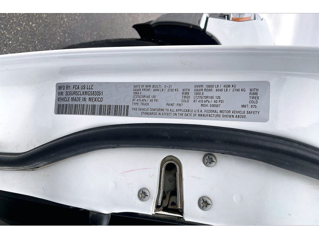 Bluetooth® technology is built into it, keeping your hands on the steering wheel and your focus on the road. This vehicle has a clean CARFAX vehicle history report. with XM/Sirus Satellite Radio you are no longer restricted by poor quality local radio stations while driving this 3/4 ton pickup. Anywhere on the planet, you will have hundreds of digital stations to choose from. See what's behind you with the back up camera on this 2021 Ram 2500 . This vehicle is a certified CARFAX 1-owner. The satellite radio system in this unit gives you access to hundreds of nation-wide radio stations with a clear digital signal. Quickly unlock this vehicle with keyless entry. This unit shines with clean polished lines coated with an elegant white finish. The vehicle has four wheel drive capabilities. This model has a 6 Cyl, 6.7L high output engine. Greater towing safety becomes standard with the installed trailer brake.