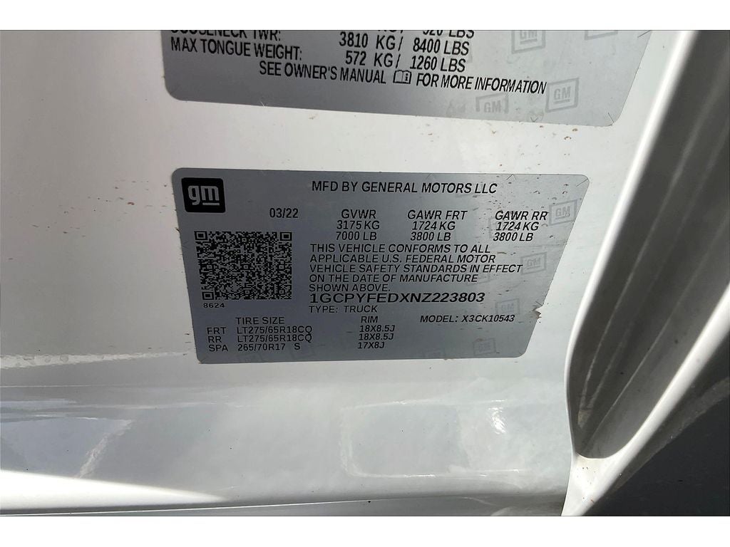 Safety Package: Perimeter Lighting; Ultrasonic Front and Rear Park Assist; Rear Cross Traffic Alert; Lane Change Alert with Side Blind Zone Alert. Preferred Equipment Group 2LT: LED Cargo Area Lighting; Rear Vision Camera; Bluetooth® For Phone; Remote Vehicle Starter System; 2 USB Ports (first Row); Electric Rear-Window Defogger; 5.3L EcoTec3 V8 Engine with NSS; Theft Deterrent System (unauthorized Entry); Auxiliary External Transmission Oil Cooler; LT275/65R18C MT BW Tires; Compass; 4.2" Diagonal Color Display Driver Info Center; Heated Steering Wheel; Trailering Package; Standard Tailgate; Front LED Fog Lamps; Heated Driver & Front Outboard Passenger Seats; Suspension Package; Steering Wheel Audio Controls; Color-Keyed Carpeting Floor Covering; OnStar and Chevrolet Connected Services Capable; Power Front Windows with Passenger Express Down; 2-Speed Transfer Case; Deep-Tinted Glass; All-Weather Floor Liner; High Gloss