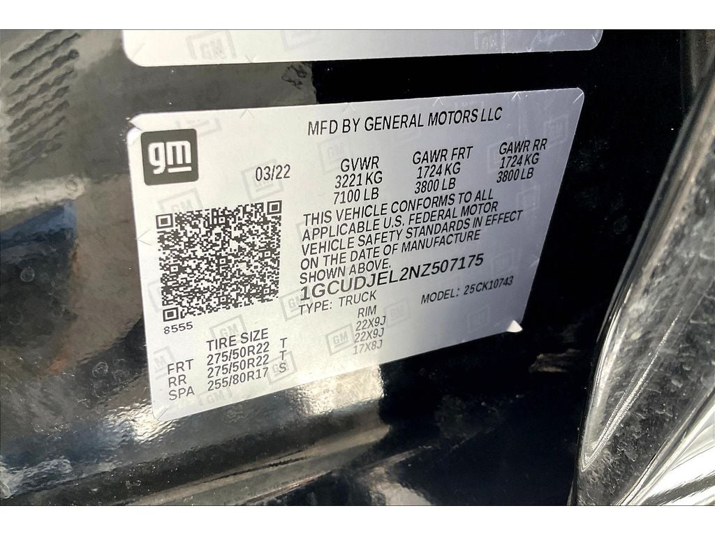 Technology Package: 15" Diagonal Multicolor Head-Up Display; Rear Camera Mirror; Enhanced Automatic Emergency Braking; Adaptive Cruise Control. Preferred Equipment Group 3LZ: Trailer Side Blind Zone Alert; Chrome Assist Steps; Driver Memory; Perforated Leather Seat Trim; SiriusXM with 360L; Power Sliding Rear Window with Rear Defogger; Safety Alert Seat; Ultrasonic Front and Rear Park Assist; Trailer Camera Provisions; Electric Rear-Window Defogger; Theft Deterrent System (unauthorized Entry); Front Rainsensing Wipers; Compass; Heated Steering Wheel; 120-Volt Instrument Panel Power Outlet; Heated Driver and Front Outboard Passenger Seats; Wireless Charging; Front Bucket Seats; Color-Keyed Carpeting Floor Covering; OnStar and Chevrolet Connected Services Capable; 2nd Row Heated Outboard Seats; Power Front Passenger Windows with Express Up/down; Front Carpeted Floor Mats; Rear Carpeted Floor Mats; 12.3" Multicolor Reconfigurable Digital Display; Body-Color Painted Mirror Caps; Power Rear Windows with Express Down; Integrated Trailer Brake Controller; HD Surround Vision; Ventilated Driver and Front Passenger Seats; Leather Wrapped Steering Wheel; Power Tilt and Telescoping Steering Column; Keyless Open and Start; Perimeter Lighting; Auto-Dimming Inside Rearview Mirror; LED Cargo Area Lighting; Bluetooth® For Phone; Remote Vehicle Starter System; Trailering App; Floor Mounted Center Console; Bed View Camera; Rear Cross Traffic Alert-Braking; Trailering Package; Electrical Steering Column Lock; Wireless Phone Projection; Up-Level Rear Seat with Storage Package; Standard Tailgate; 2 USB Data Ports; Front LED Fog Lamps; Chrome Recovery Hooks; Steering Wheel Audio Controls; Dual Rear USB Ports (charge Only); Universal Home Remote; 2-Speed Transfer Case; Deep-Tinted Glass; 10-Way Power Driver Seat with Lumbar; Chevytec Spray-On Black Bedliner; Dual Exhaust with Polished Outlets; Electronic Cruise Control; Chevy Safety Assist; Hitch Guidance with Hitch View; Power Front Windows with Driver Express Up/down; Power Tailgate; Rear Pedestrian Detection; 10-Way Power Passenger Seat Adjuster with Lumbar; Outside Heated Power-Adjustable Mirrors; Rear Wheelhouse Liners; Auto-Locking Rear Differential. 22" High Gloss Black Wheels. Adaptive Ride Control Suspension. Front Black Bowtie Emblem. **Equipment listed is based on original vehicle build and subject to change. Please confirm the accuracy of the included equipment by calling the dealer prior to purchase.**