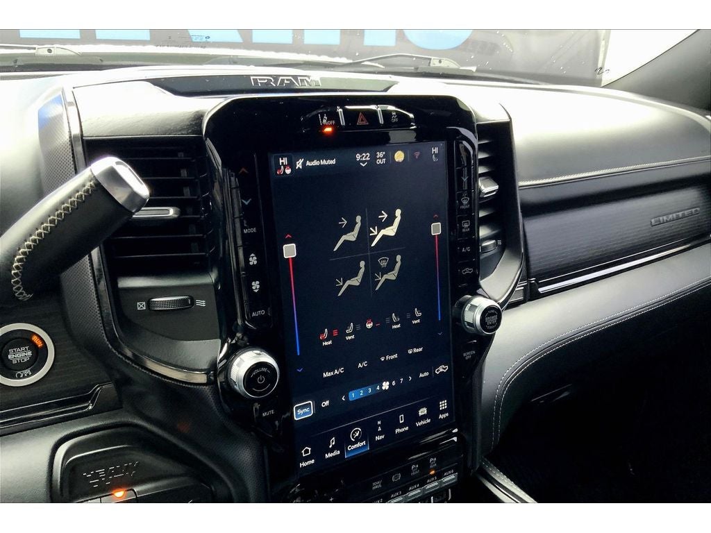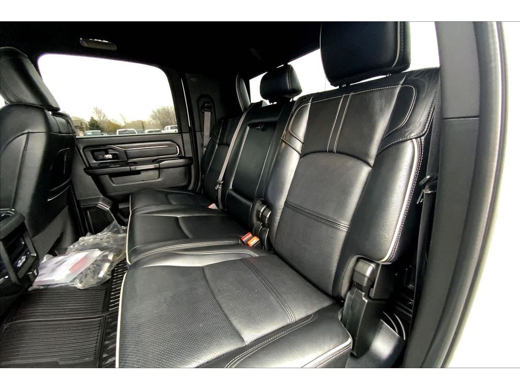 Cold Weather Group: Engine Block Heater; MOPAR Winter Front Grille Cover. Quick Order Package 2HM Limited. Limited Level 1 Equipment Group: 17 Speaker Harman Kardon Premium Sound; Center Stop Lamp with Cargo View Camera; Surround View Camera System; Adaptive Cruise Control with Stop; Trailer Reverse Guidance; Digital Rearview Mirror; Adaptive Steering System; Full Speed Forward Collision Warning Plus; Lane Keep Assist. Night Edition: Mirror-Mounted Aux Reverse Lamps; Black RAM Head Tailgate Badge; Exterior Mirrors with Supplemental Signals; Black Headlamp Bezels; Body Color Door Handles; Exterior Mirrors Courtesy Lamps; Black Wheel Center Hub; Painted Front Bumper; Painted Rear Bumper; Trailer Tow Mirrors; Exterior Mirrors with Heating Element; Black Exterior Truck Badging; Exterior Mirrors with Memory; Tow Hooks; Mirror Running Lights; Body Color Grille Surround; Power-Folding Mirrors; Black Exterior Mirrors; Black Limited Grille; 20" X 8.0" Cast Aluminum Black Wheels; Black Tail Lamp Bezels; Power Convenience Black Tow Mirrors with Spotter and Memory; Power Adjustable Convex Aux Mirrors. Off Road Package: Front Performance Tuned Shock Absorbers; Off Road Decal; Transfer Case Skid Plate Shield; Hill Descent Control; Rear Performance Tuned Shock Absorbers. Snow Chief Group: Clearance Lamps; Instrument Panel Mounted Auxiliary Switches; Anti-Spin Differential Rear Axle; Transfer Case Skid Plate Shield; 220 Amp Alternator. Power Sunroof. 5th Wheel/gooseneck Towing Prep Group. Anti-Spin Differential Rear Axle. Center Stop Lamp with Cargo View Camera. Adaptive Steering System. Pearl White. Instrument Panel Mounted Auxiliary Switches. Clearance Lamps. **Equipment listed is based on original vehicle build and subject to change. Please confirm the accuracy of the included equipment by calling the dealer prior to purchase.**