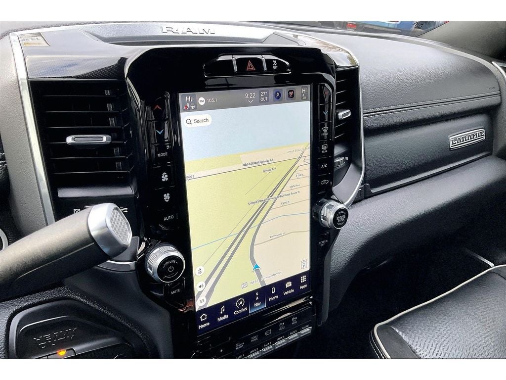 Quick Order Package 21H Laramie. Laramie Level B Equipment Group: SiriusXM Satellite Radio; Mirror-Mounted Aux Reverse Lamps; Rain Sensitive Windshield Wipers; Power Adjustable Pedals with Memory; Power Chrome Tow Mirrors with Convex Spotter and Memory; Ventilated Front Seats; Remote Tailgate Release; 17 Speaker Harman Kardon Premium Sound; Auto High Beam Headlamp Control; Chrome Exterior Mirrors; Exterior Mirrors with Memory; Heated Second Row Seats; Foam Bottle Insert (door Trim Panel); 2nd Row in Floor Storage Bins; Radio/driver Seat/mirrors/pedals Memory; Power Adjustable Convex Aux Mirrors. Night Edition: Mirror-Mounted Aux Reverse Lamps; Black Ram Head Tailgate Badge; 20" X 8.0" Black Painted Aluminum Wheels; Exterior Mirrors with Supplemental Signals; Black Headlamp Bezels; Body Color Door Handles; Exterior Mirrors Courtesy Lamps; Black Wheel Center Hub; Painted Front Bumper; Painted Rear Bumper; Exterior Mirrors with Heating Element; LT285/60R20E OWL On/off Road Tires; Black Exterior Truck Badging; Exterior Mirrors with Memory; Gloss Black Grille Billets/accents; Mirror Running Lights; Body Color Grille Surround; Black Interior Accents; Power-Folding Mirrors; Black Exterior Mirrors; Black Tail Lamp Beze