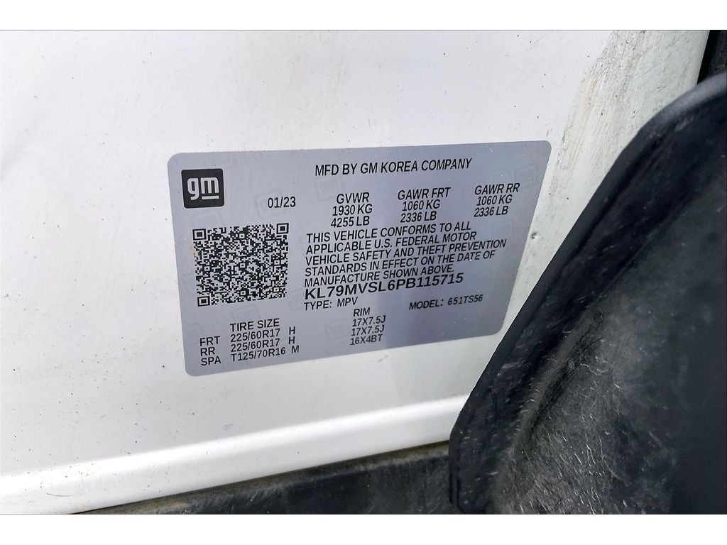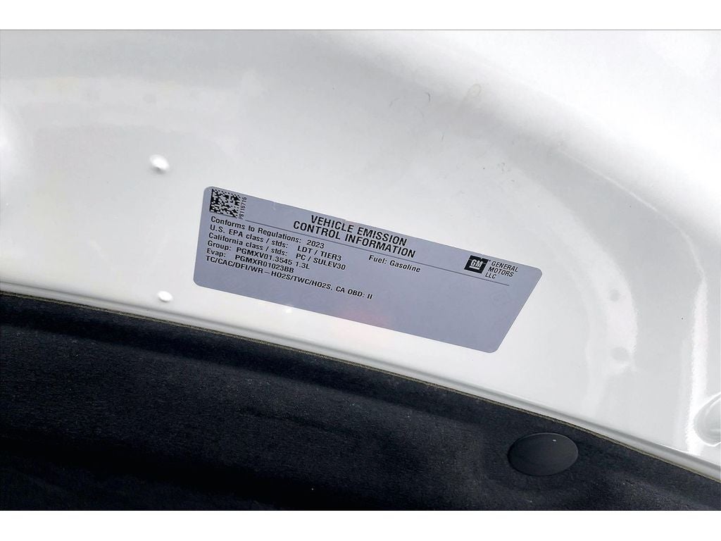 Convenience Package: Single-Zone Auto Climate Control Air Conditioning; 1 type-A and 1 type-C USB Charging-Only Ports; 8" Diagonal Color Touchscreen Display; 120-Volt Power Outlet; Inside Rearview Auto-Dimming Mirror; Driver and Front Passenger Illuminated Vanity Mirrors. Driver Confidence Package: Rear Cross Traffic Alert; Rear Park Assist; Lane Change Alert with Side Blind Zone Alert. Preferred Equipment Group 1SA: Heated Steering Wheel; Continuously Variable Transmission; Leatherette Seat Trim; 225/60R17 Sport Terrain BW Tires; 17" High Gloss Black Machined Aluminum Wheels; 5.45 Axle Ratio; 4. 255 lbs (1. 930 Kgs) GVWR; 1.3L Ecotec Turbo DOHC SIDI Engine with Variable Valve Timing; Front Bucket Seats; Chevrolet Infotainment 3 System Radio. Sun and Liftgate Package: Hands-Free Power Programmable Liftgate; Dual-Pane Panoramic Power Sunroof. Front License Plate Bracket. **Equipment listed is based on original vehicle build and subject to change. Please confirm the accuracy of the included equipment by calling the dealer prior to purchase.**
