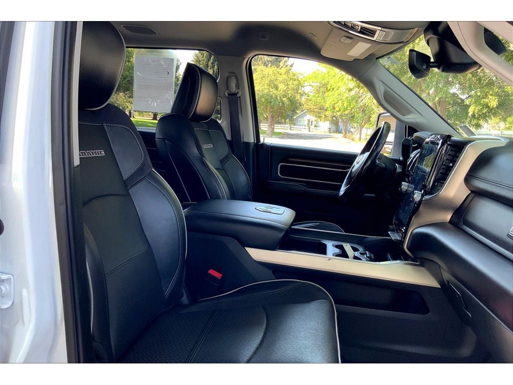 Cold Weather Group: Engine Block Heater; MOPAR Winter Front Grille Cover. Quick Order Package 21H Laramie. Safety Group: Auto High Beam Headlamp Control; Rain Sensitive Windshield Wipers; Adaptive Cruise Control with Stop; Adaptive Steering System; Full Speed Forward Collision Warning Plus; Lane Keep Assist. Towing Technology Group: Center Stop Lamp with Cargo View Camera; Surround View Camera System; Trailer Reverse Guidance. Bed Utility Group: MOPAR Spray in Bedliner; MOPAR Deployable Bed Step; LED Bed Lighting. Laramie Level Fequipment Group: Google Android Auto; Rear Window Defroster; Blind Spot and Cross Path Detection; Rain Sensitive Windshield Wipers; Power Adjustable Pedals with Memory; Rear Power Sliding Window; Integrated Voice Command with Bluetooth®; Connectivity - US/Canada; 12" Touchscreen Display; Auto Power-Folding Mirrors; GPS Navigation; GPS Antenna Input; Exterior Mirrors with Heating Element; Auto Dim Exterior Mirror; SiriusXM with 360L; Connected Travel and Traffic Services; Front LED Fog Lamps; Heated Second Row Seats; LED Reflector Headlamps; Mirror Running Lights; Foam Bottle Insert (door Trim Panel); Alexa Built-In; Apple CarPlay; Power-Adjustable Convex Aux Mirrors; Off-Road Information Pages; Forward and Reverse Utility Lights; Selectable Tire Fill Alert; Trailer Tow Pages; Disassociated Touchscreen Display; HD Radio; Ramcharger Wireless Charging Pad; Uconnect 5 Navigation with 12.0" Display Radio; Power Heated Folding Telescopic Mirrors with Memory; Exterior Mirrors with Supplemental Signals; Exterior Mirrors Courtesy Lamps; Remote Tailgate Release; 17 Speaker Harman Kardon Premium Sound; Auto High Beam Headlamp Control; Chrome Exterior Mirrors; Exterior Mirrors with Memory; Power Adjust Mirrors; Power Telescoping Mirrors; Auto Dimming Exterior Passenger Mirror; Auto Adjust in Reverse Exterior Mirrors; ParkSense Front/rear Park Assist System. Chrome Bumper Package: Bright Rear Bumper; Bright Front Bumper. Chrome Flat Wheel-To-wheel Side Steps. MOPAR Spray in Bedliner. Blind Spot and Cross Path Detection. Leather Trimmed Bucket Seats. 5th Wheel/gooseneck Towing Prep Group. Trailer Tire Pressure Monitoring System. Center Stop Lamp with Cargo View Camera. Adaptive Steering System. MOPAR Front and Rear Rubber Floor Mats. **Equipment listed is based on original vehicle build and subject to change. Please confirm the accuracy of the included equipment by calling the dealer prior to purchase.**