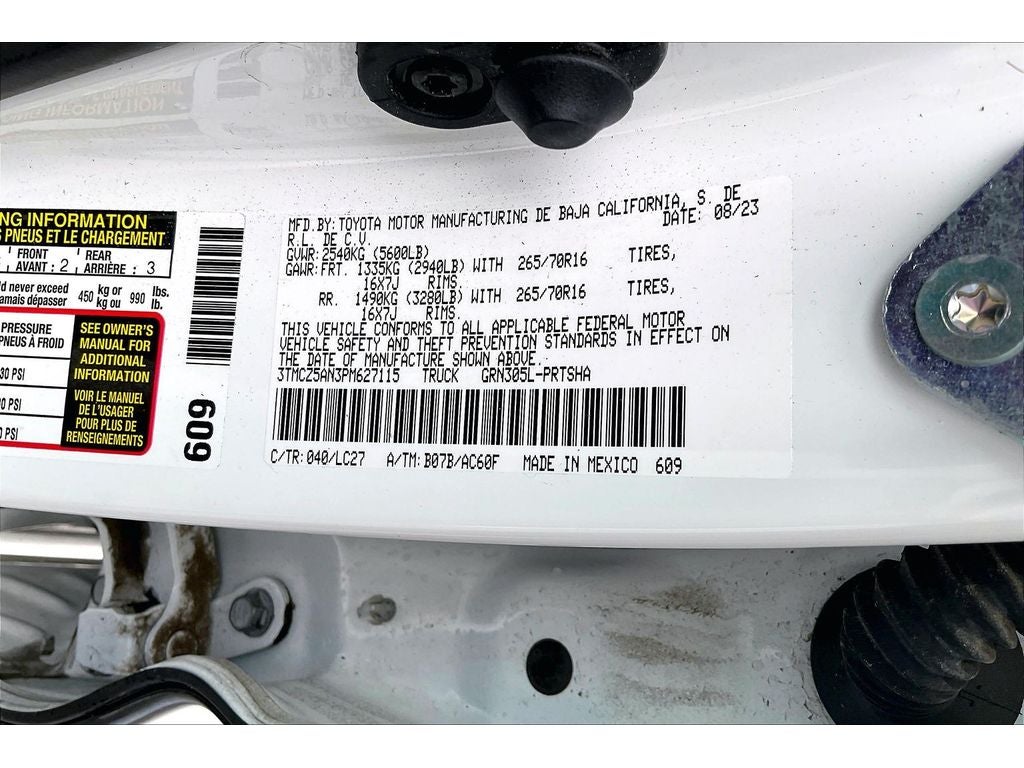 TRD Premium Off Road Package: 16" Machined Contrast Alloy Wheels; Qi-Compatible Wireless Charger; Power Sliding Rear Window with Privacy Glass; Front Door Smart Key System with Push Button Start; Premium JBL Audio Radio with Dynamic Navigation; Power Tilt/slide Moonroof; Black Overfenders; 120V/400W Deck Mounted AC Power; Heated Front Seats; Leather Seat Trim; Auto-Dimming Rearview Mirror with HomeLink; Engine Immobilizer; P265/70R16 All-Season Tires; Front Seats. Advanced Technology Package: Rear Parking Assist Sonar; Multi Terrain Monitor with Camera; Blind Spot Monitor with Rear Cross Traffic Alert; Mesh Front Grille. LED Headlights with Black Bezel LED Fog Lights. Black Out Package. All Weather Floor Liner and Door Sill Protector. Mudguards. USB Power Port. **Equipment listed is based on original vehicle build and subject to change. Please confirm the accuracy of the included equipment by calling the dealer prior to purchase.**