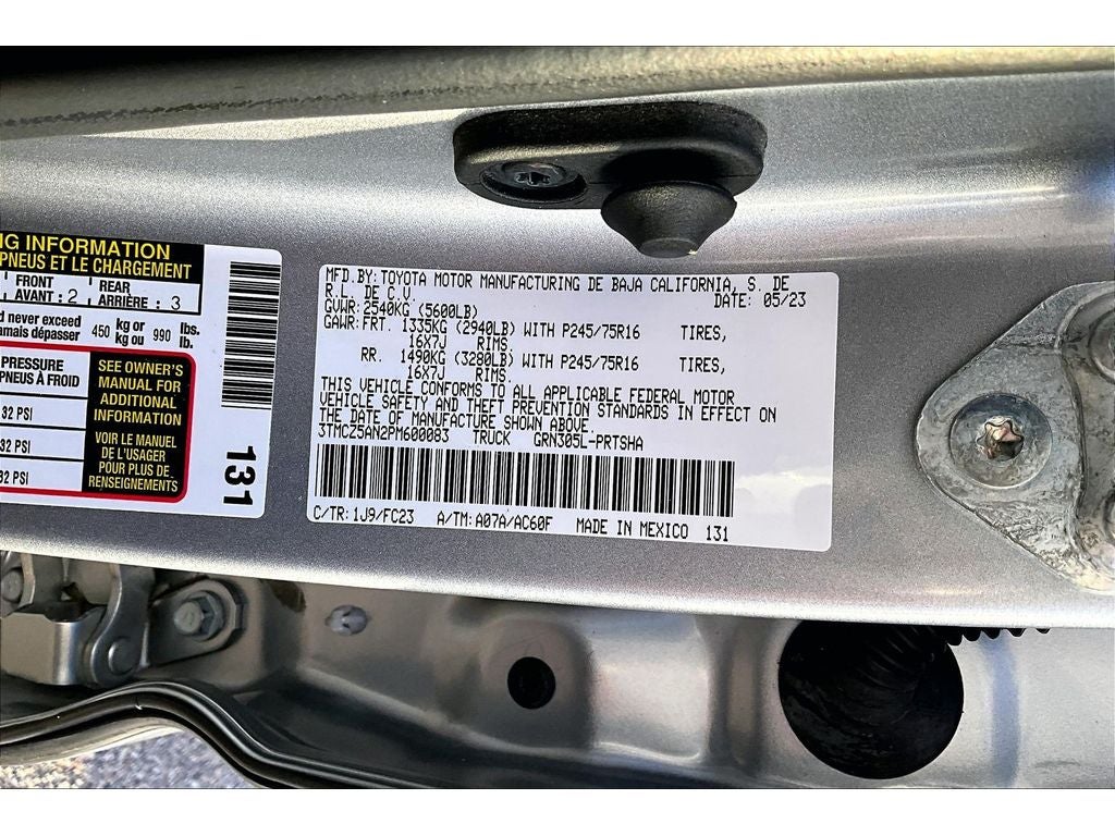 SR5 Package: Power Sliding Rear Window with Privacy Glass; Front Door Smart Key System with Push Button Start; Color-Keyed Overfenders; Daytime Running Lamps; Front Fog and Driving Lamp; P245/75R16 All-Season Tires; Charcoal Grille with Chrome Surround; 16" Dark Gray Alloy Wheels; Black Headlamp Bezel; Front Seats. Technology Package: Blind Spot Monitor with Rear Cross Traffic Alert. **Equipment listed is based on original vehicle build and subject to change. Please confirm the accuracy of the included equipment by calling the dealer prior to purchase.**