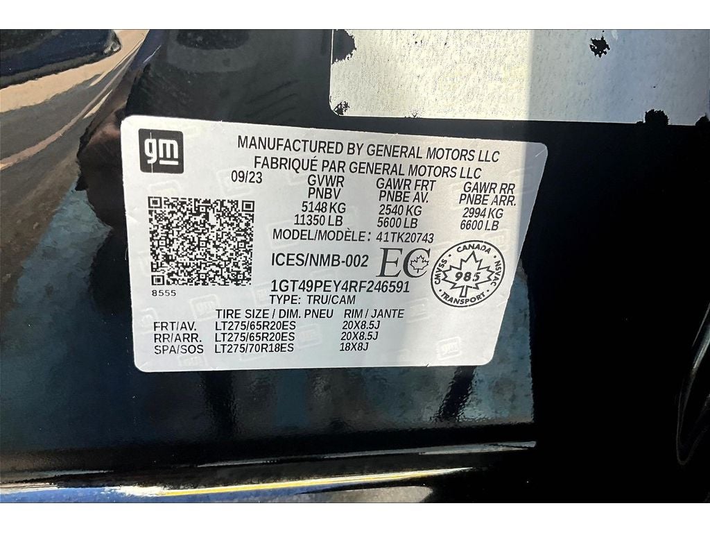 Preferred Equipment Group 4SB: LED Cargo Area Lighting; Trailer Side Blind Zone Alert; SiriusXM with 360L; Remote Vehicle Starter System; Safety Alert Seat; Ultrasonic Front and Rear Park Assist; Trailer Cam Provisions and Trailer Viewing Software; Electric Rear-Window Defogger; Floor-Mounted Center Console; Gloss Black Header Grille and Grille Insert Bars; Unauthorized Entry Theft-Deterrent System; Bed View Camera with Two Trailer Camera Provisions; Front Rain-Sensing Wipers; Sierra HD Pro Safety; Wireless Phone Projection; 2 USB Ports; Rear Cross Traffic Alert; 120-Volt Instrument Panel Power Outlet; 2 Charge/data USB Ports Inside Center Console; Heated Driver and Front Outboard Passenger Seats; Wireless Charging; X31 Off-Road Package; Front Premium Floor Liners with Removable Carpet Insert; Steering Wheel Audio Controls; Rear Premium Floor Liners with Removable Carpet Insert; 2 Charge-Only Rear USB Ports; GMC Connected Access Capable; OnStar and GMC Connected Services Capable; 120-Volt Bed Mounted Power Outlet; Heated 2nd Row Outboard Seats; Power Front Passenger Windows with Express Up/down; Bose Premium 7-Speaker Sound System; 2-Speed Active Transfer Case; Deep-Tinted Glass; Spray-On Bedliner with AT4 Logo; Integrated Trailer Brake Controller; HD Surround Vision; Ventilated Driver and Front Passenger Seats; Manual Tilt-Wheel/telescoping Steering Column; Keyless Open and Start; ProGrade Trailering System; Push Button Start; Rear Wheelhouse Liners. REV Hard-Folding Tonneau Cover. Onyx Black. GMC MultiPro Tailgate Step Lights. Cargo Tie-Down Rings (set of 4). **Equipment listed is based on original vehicle build and subject to change. Please confirm the accuracy of the included equipment by calling the dealer prior to purchase.**