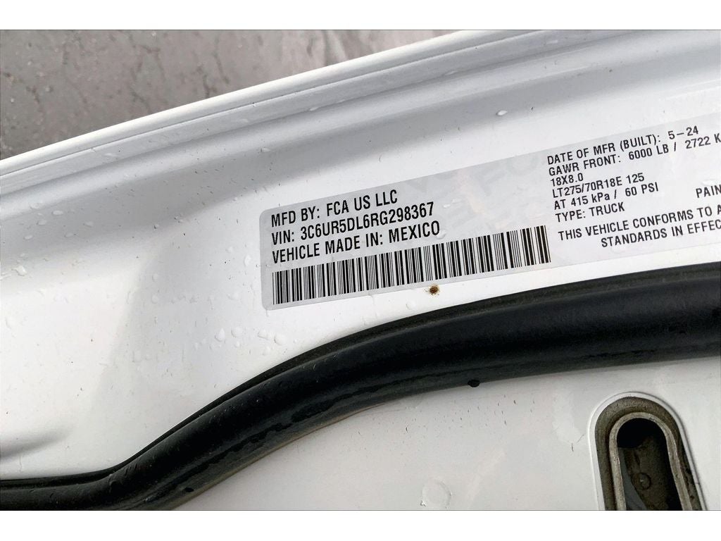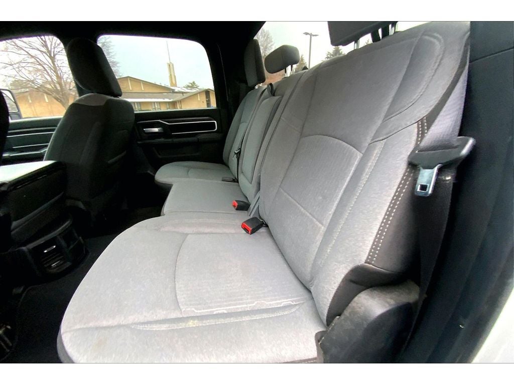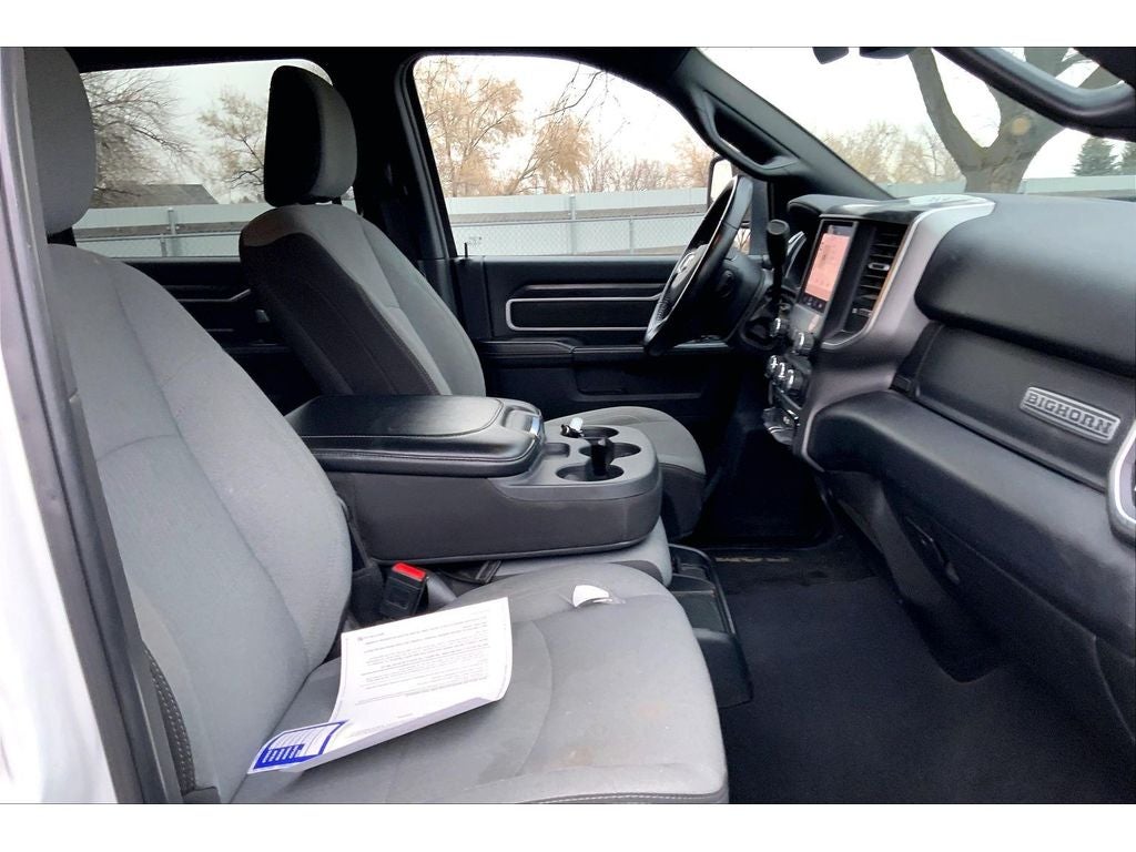 Quick Order Package 2HZ Big Horn. Level 1 Equipment Group: Google Android Auto; SiriusXM Radio Service; Bluetooth® Handsfree Phone and Audio; Integrated Center Stack Radio; For Details. Visit DriveUconnect.com; For More Info. Call 800-643-2112; Leather Wrapped Steering Wheel; Rear Dome with On/off Switch Lamp; Front Fog Lamps; Integrated Voice Command with Bluetooth®; Connectivity - US/Canada; Premium Cloth 40/20/40 Bench Seat; Glove Box Lamp; Auto Power-Folding Mirrors; Footwell Courtesy Lamp; 4G LTE Wi-Fi Hot Spot; GPS Antenna Input; Exterior Mirrors with Heating Element; Global Telematics Box Module; Mirror Running Lights; Uconnect 5 W Radio with 8.4" Display; 8.4" Touchscreen Display; Foam Bottle Insert (door Trim Panel); Black Exterior Mirrors; 18" X 8.0" Polished Aluminum Wheels; Apple CarPlay; Big Horn Instrument Panel Badge; Power Adjustable Convex Aux Mirrors; Forward and Reverse Utility Lights; Locking Lower Glove Box; Selectable Tire Fill Alert; SiriusXM Satellite Radio; Power Heated Fold Telescope Mirrors; Exterior Mirrors with Supplemental Signals; Steering Wheel Mounted Audio Controls; Exterior Mirrors Courtesy Lamps; Dual Glove Boxes; Center Hub; Power Adjust Mirrors; 2nd Row in Floor Storage Bins; Power Telescoping Mirrors. Quick Order Package 2GZ Big Horn. Premium Cloth 40/20/40 Bench Seat. Chrome Flat Cab-Length Side Steps. Front Fog Lamps. Tow Hooks. **Equipment listed is based on original vehicle build and subject to change. Please confirm the accuracy of the included equipment by calling the dealer prior to purchase.**