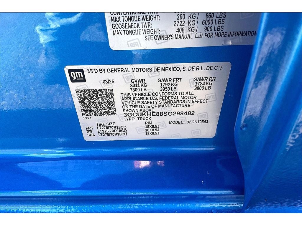 Preferred Equipment Group 3LT: Trailer Side Blind Zone Alert; Driver Memory; Perforated Leather Seat Trim; SiriusXM with 360L Trial Subscription; Power Sliding Rear Window with Rear Defogger; Safety Alert Seat; Ultrasonic Front and Rear Park Assist; Trailer Camera Provisions; Electric Rear-Window Defogger; Theft Deterrent System (unauthorized Entry); Front Rain-Sensing Wipers; Heavy-Duty Air Filter; Skid Plates; Heated Steering Wheel; 120-Volt Interior Power Outlet; Heated Driver and Front Outboard Passenger Seats; Front Bucket Seats; Color-Keyed Carpeting Floor Covering; OnStar Services Capable; 2nd Row Heated Outboard Seats; ZR2 Suspension Package; Power Front Passenger Windows with Express Up/down; 12.3" Multicolor Reconfigurable Digital Display; High Gloss Black Mirror Caps; Power Rear Windows with Express Down; Integrated Trailer Brake Controller; HD Surround Vision; Ventilated Driver and Front Passenger Seats; Manual Tilt/telescoping St