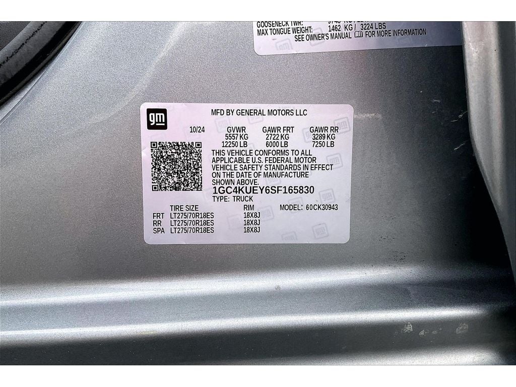 Preferred Equipment Group 1LZ: HD Rear Vision Camera; LT275/70R18E AT BW Tires; Chrome Door Handles; Durabed Pickup Bed; Perforated Leather-Appointed Front Outboard Seat Trim; SiriusXM with 360L Trial Subscription; Bluetooth® For Phone; Remote Vehicle Starter System; In-Vehicle Trailering App System; Electric Rear-Window Defogger; Unauthorized Entry Theft-Deterrent System; 170 Amp Alternator; Front Rain-Sensing Wipers; Compass Located in Instrument Cluster; Heated Steering Wheel; Up-Level Rear Seat with Storage Package; Standard Tailgate; Suspension Package; 120-Volt Interior Power Outlet; Front LED Fog Lamps; Front 40/20/40 Split-Bench Seats with Lockable Storage; Steering Wheel Audio Controls; Chevrolet Connected Access Capable; Color-Keyed Carpeting Floor Covering; OnStar Services Capable; 120-Volt Bed Mounted Power Outlet; Front Rubberized Vinyl Floor Mats; Rear Rubberized-Vinyl Floor Mats; Power Front Windows with Passenger Express Up/down; Deep-Tint