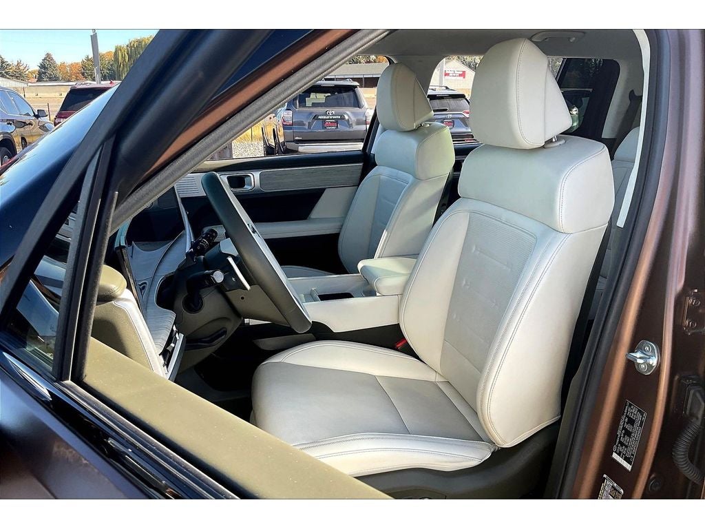 Discover exceptional value with this 2025 Hyundai Santa Fe Calligraphy AWD, located in Rigby, ID. With only 11,319 miles, this low-mileage luxury crossover pairs refined comfort with efficient performance thanks to a 4-cylinder, 2.5L gasoline engine and confident all-wheel drive. Priced to sell—this Hyundai Santa Fe Calligraphy offers the best price in the area for buyers seeking upscale features without the new-car cost. Step inside to premium leather seats and refined interior touches that deliver both comfort and style for daily drives or long road trips. Stay connected and entertained with Android Auto and hands-free Bluetooth®, while the back-up camera boosts safety and parking confidence. Automatic climate control keeps passengers comfortable in every season, making every drive enjoyable. This Hyundai Santa Fe Calligraphy is ideal for families, commuters, and drivers wanting a versatile SUV with a combination of luxury and practicality. Rigby, ID buyers will appreciate easy local access to test drive this low-mileage Hyundai with top-tier features at an unbeatable price. Don't miss your chance to own a well-equipped 2025 Hyundai Santa Fe Calligraphy with AWD, a fuel-efficient 2.5L engine, and modern tech comforts—schedule your test drive today and experience why this vehicle stands out among pre-owned SUVs.