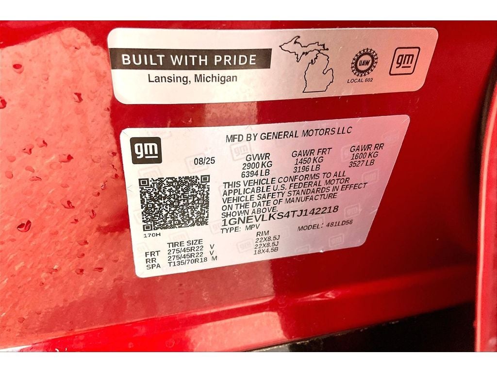 Preferred Equipment Group 2RS. Floor Liner Package: Integrated Cargo Liner; 3rd Row All-Weather Floor Liner; 1st and 2nd Row All-Weather Floor Liners. Power Dual Glass Panoramic Sliding Sunroof. Radiant Red Tintcoat. Integrated Cargo Liner. Front License Plate Mounting Package. **Equipment listed is based on original vehicle build and subject to change. Please confirm the accuracy of the included equipment by calling the dealer prior to purchase.**